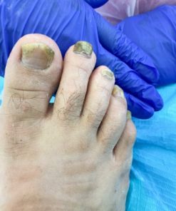 Cada 7 días de aplicación se debe desgastar la uña para que vuelva a estar porosa y se sigue con el tratamiento, mínimo de 3 a 6 meses, dependiendo de que grado de contaminación tenga la uña.